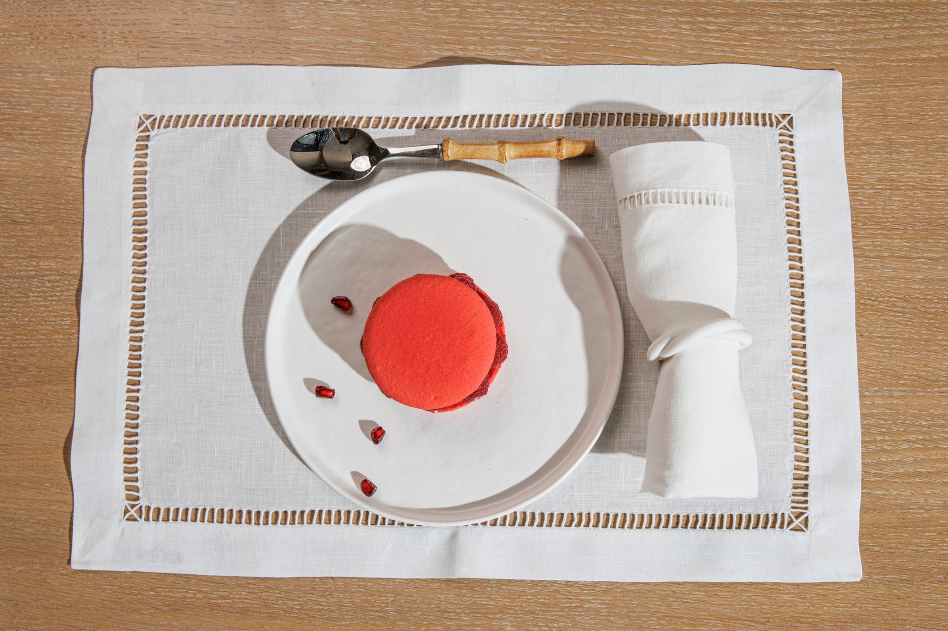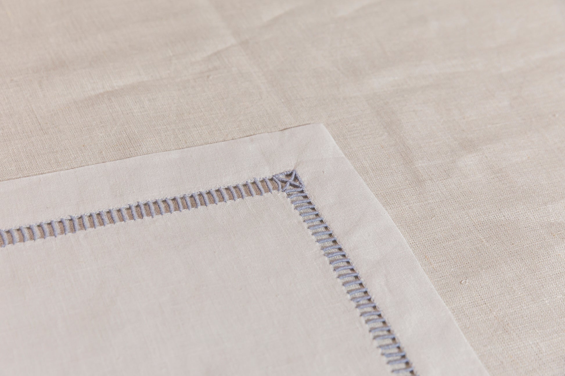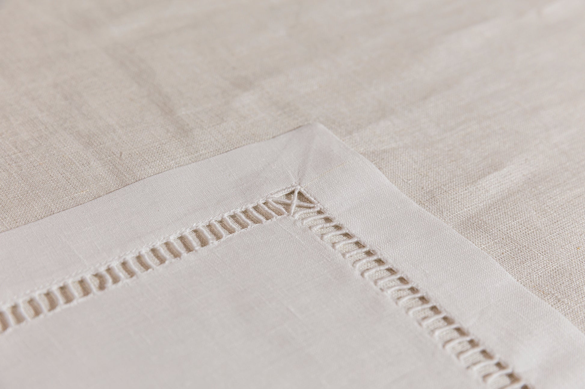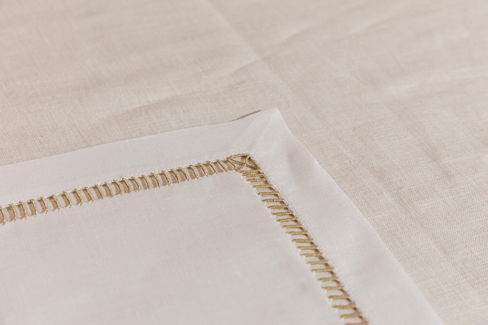 Our simple hemstitch napkins feature a simple yet refined hand-embroidered border on crisp white Italian linen, bringing understated elegance to the dining table.
