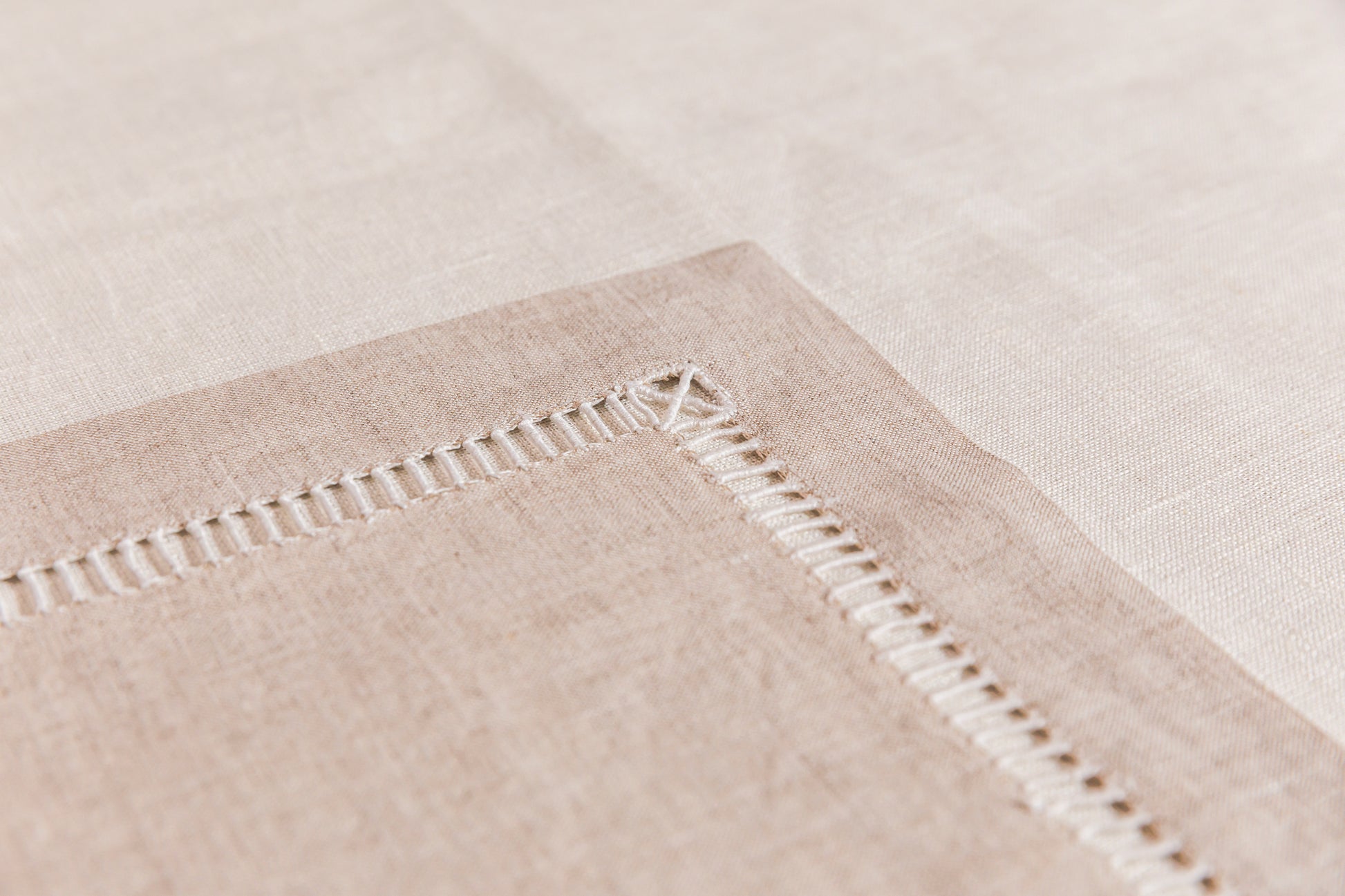 Our simple hemstitch placemats feature a simple yet refined hand-embroidered border in white on a beautiful beige Italian linen.